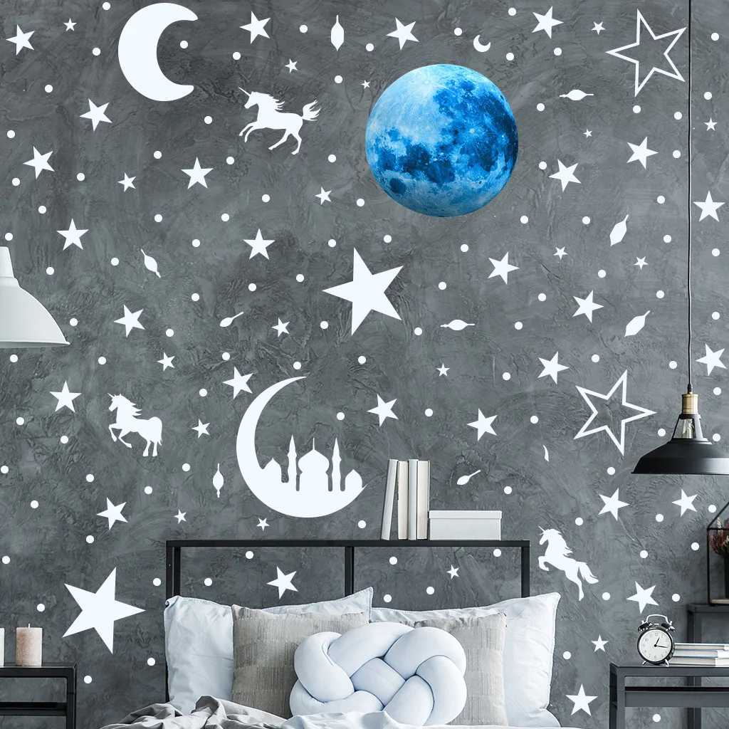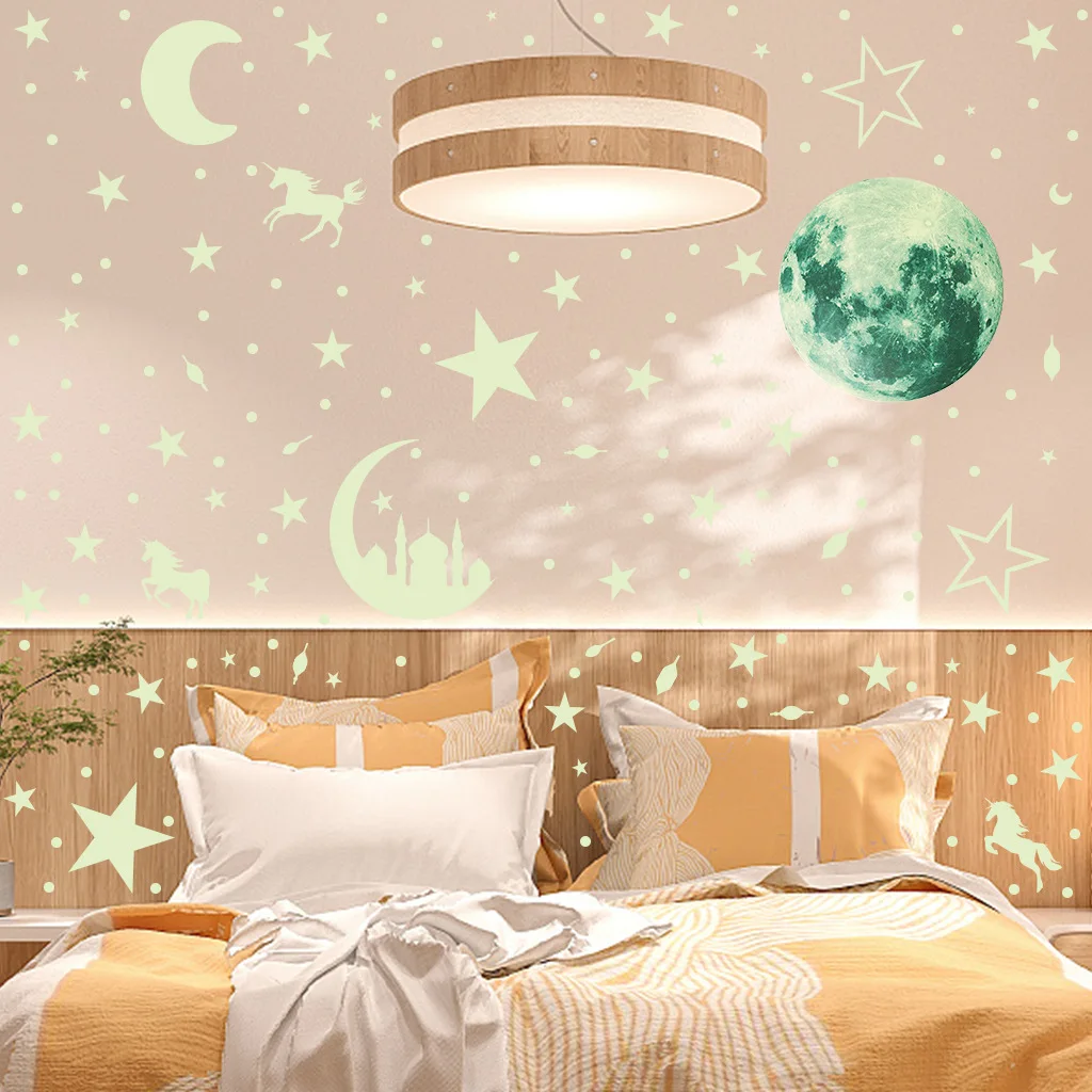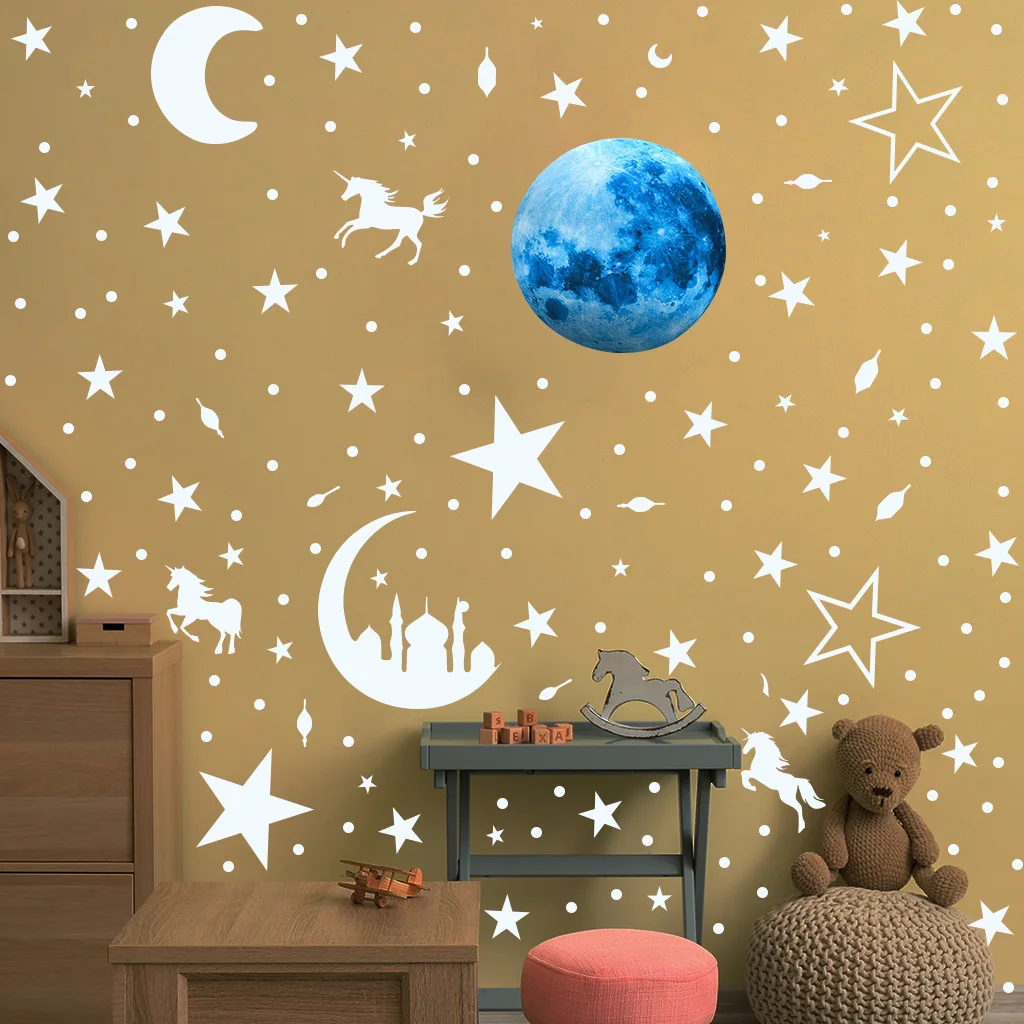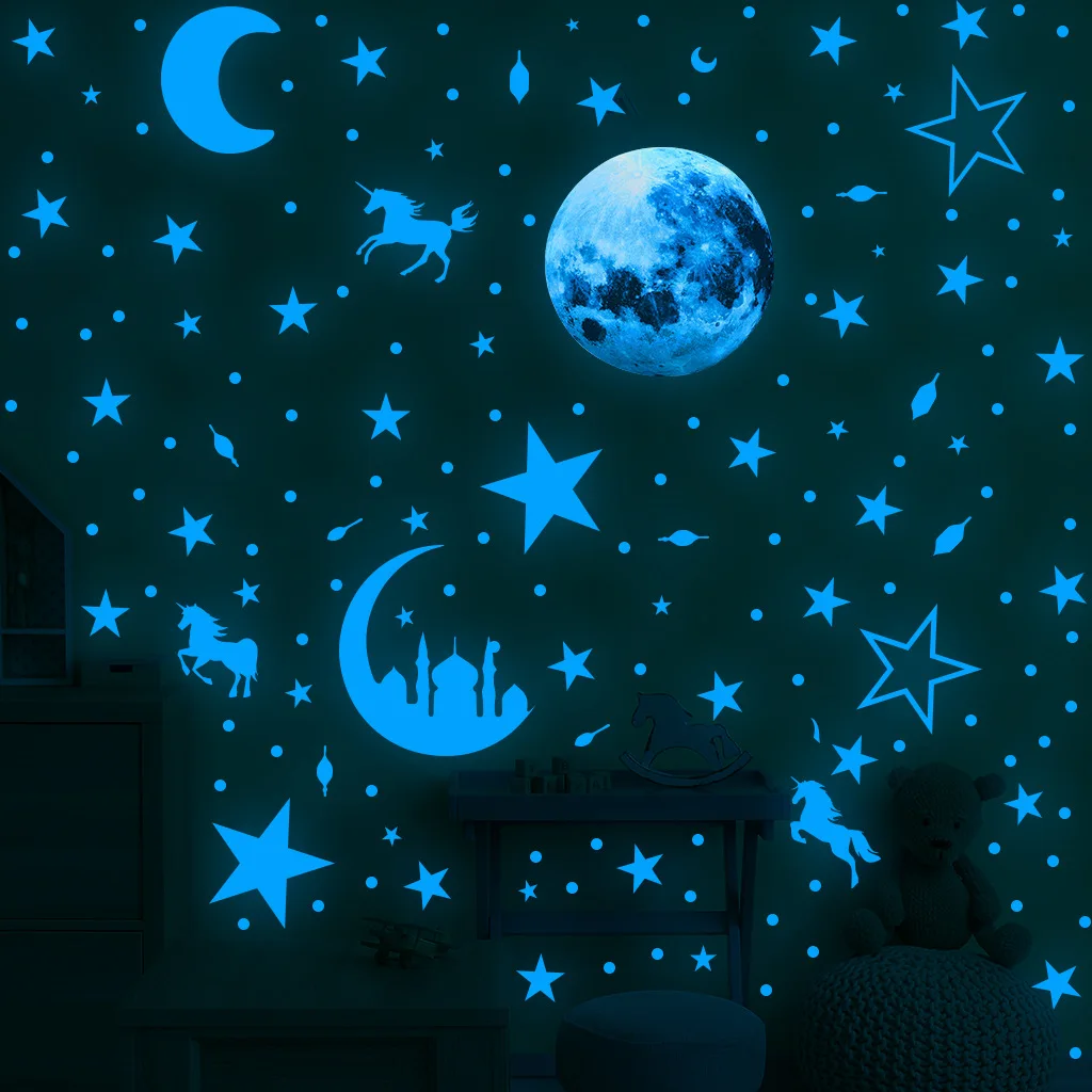 Glow-in-the-Dark Moon & Stars Wall Stickers – Luminous Décor for Kids’ Rooms & Nurseries